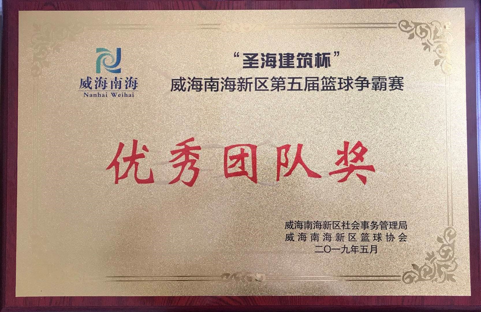 公司喜获“圣海建筑杯”威海南海新区第五届篮球争霸赛优秀团队奖