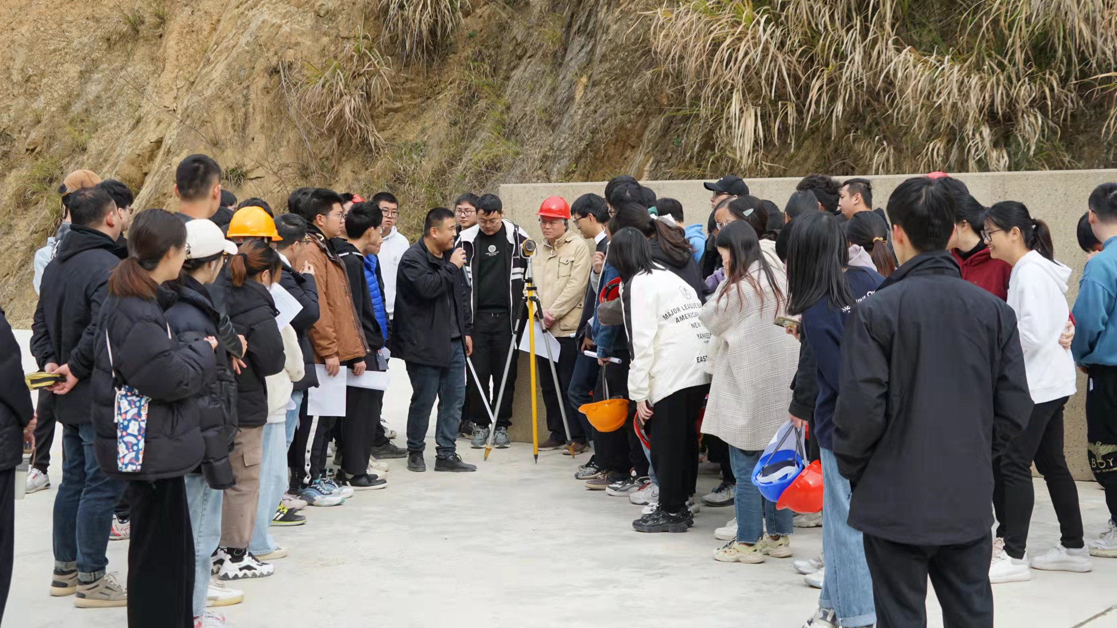 杭州鲁润公司副总工程师张仰保组织各参建单位主要管理人员给学生们作了工程建设报告、安全知识宣讲。并带领同学们现场观摩学习,对大坝的浇筑方式、引水洞内部结构、发电厂房建造、工地测量放样、现场试验室等方面进行了专业、详细的讲解。