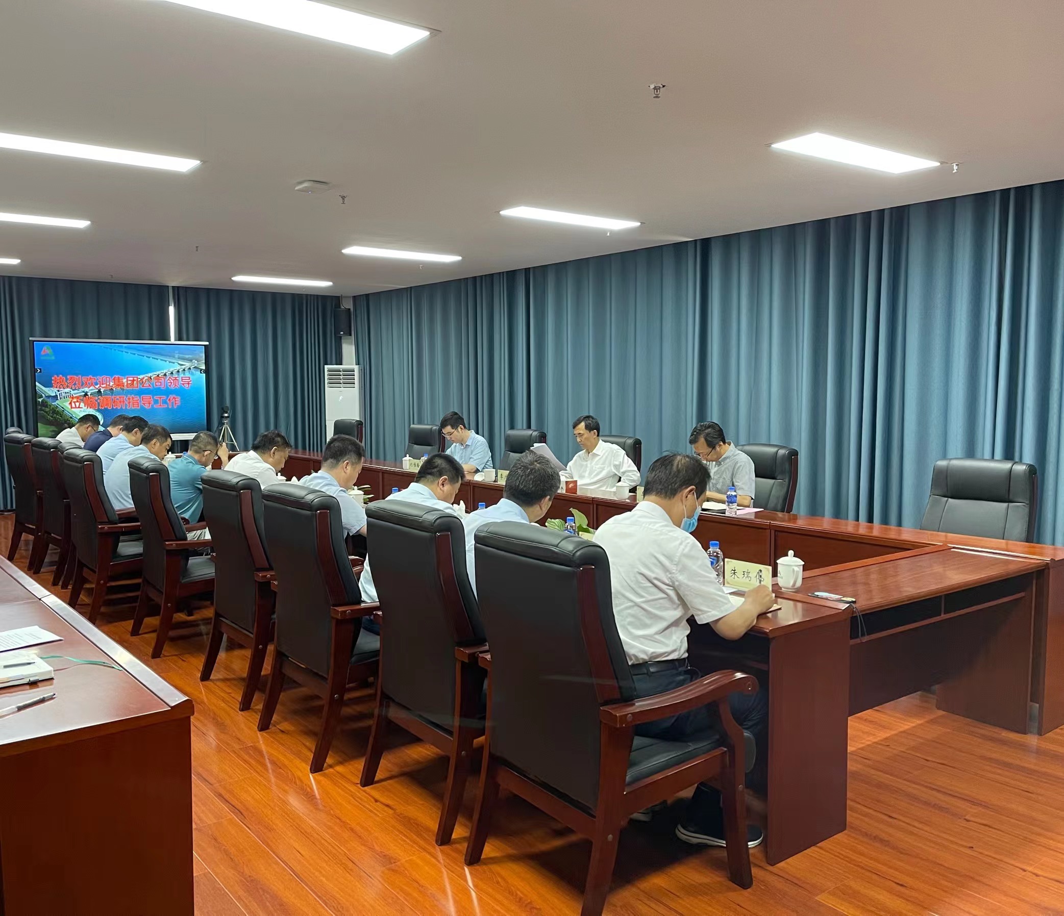 李广进一行首先在总部大楼各权属单位进行走访调研,并同部分权属单位负责人进行深入交流。随后在调研会上,李广进听取了关于山东水总基本情况、公司治理、党建工作、审计工作等有关情况的汇报,对山东水总划转心博(中国)管理以来取得的成绩表示充分肯定,转达了心博(中国)党委对山东水总的关怀和期望。