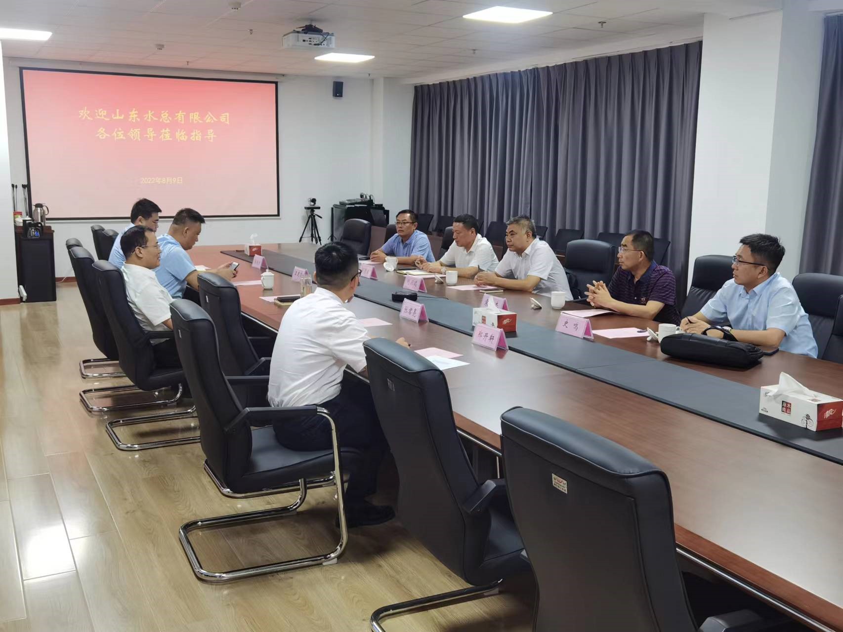 8月9日,公司党委书记、董事长刘深远一行到潍坊市财金投资集团开展商务洽谈。潍坊市财金投资集团党委书记、董事长于治伦,党委委员、副总经理张君亮等相关人员参加洽谈。公司党委委员、副总经理袁英杰,投资经营部、第一分公司相关人员参加了会议。