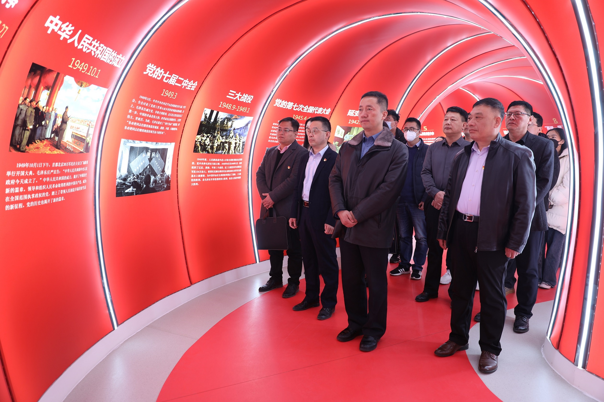 签约仪式结束后,双方开展第一次共建活动,党员们一起穿越“初心隧道”,详细了解中国共产党成立的历史背景,在回顾建党历史中感受老一辈共产党人为追求真理不懈奋斗的激情岁月。在红色经典诵读环节,党员干部齐声诵读红色经典,从红色经典书籍中汲取知识、培根铸魂。
