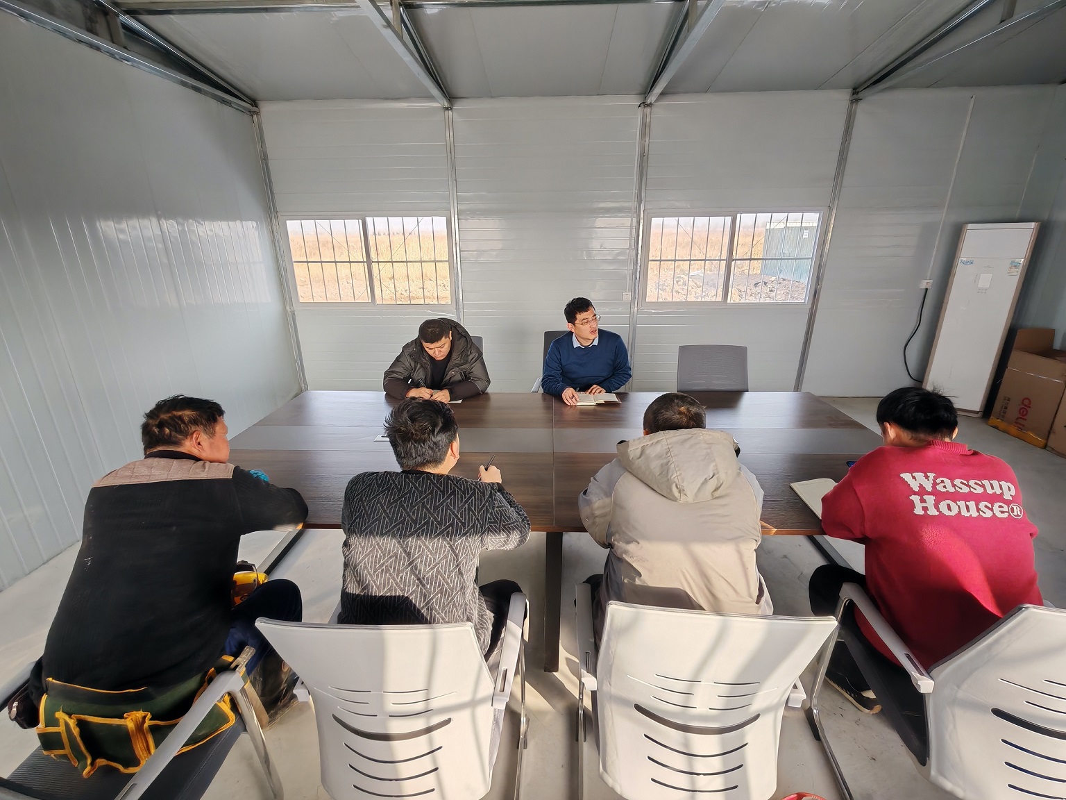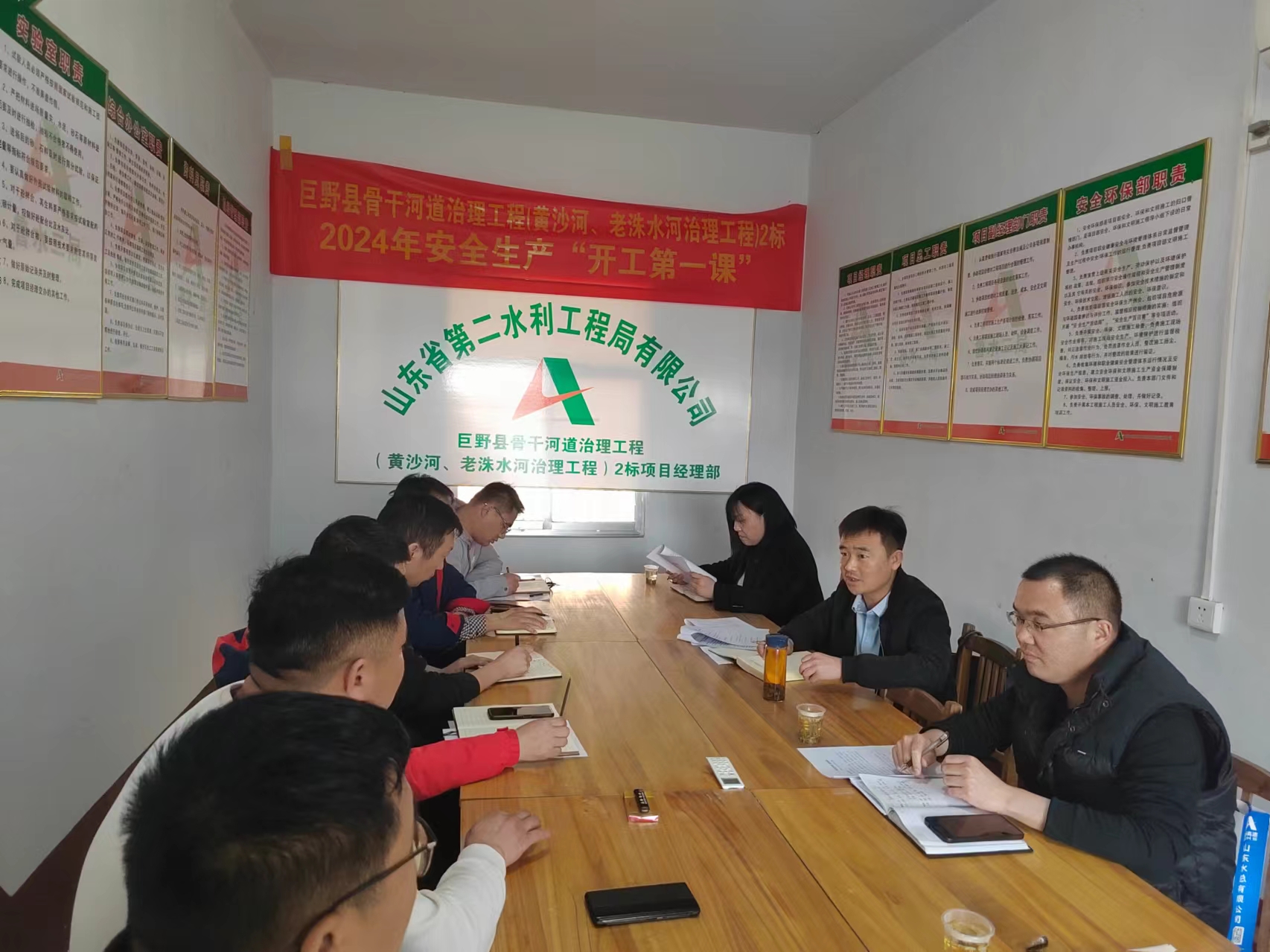 项目部成立安全生产领导小组,每月召开一次安全工作会议,每周召开安全生产例会,学习宣贯安全生产相关法律法规、公司安全生产文件及会议精神,同时对前期安全工作进行总结,布置下阶段安全工作及安全活动内容。不断强化安全生产意识,加强现场施工管理,化解安全生产风险,切实抓好活动的落实。在确保质量、安全基础上,全力以赴推进项目建设进度,确保项目建设顺利完成。