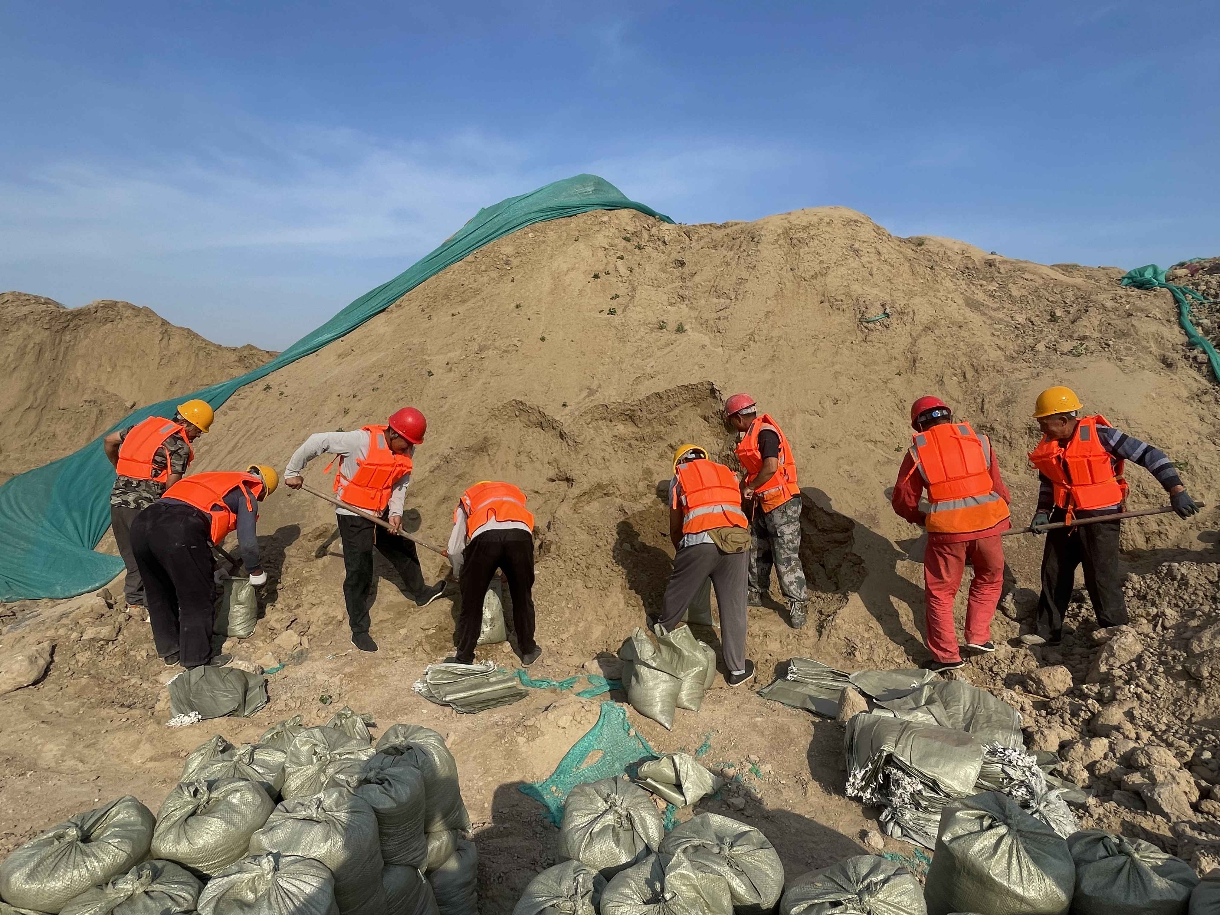演练模拟了受连续强降雨强台风影响,施工区域堤防出现渗水、管涌、坍陷等险情场景,分为渗水抢险、管涌抢护、抢筑子堤共3个科目,设置了现场警戒组、应急抢险组、医疗救护组、后勤保障组、党员先锋队等5个行动小组,共50余人参加。演练开始后,项目部立即启动应急响应,统一指挥调度抢险救援工作,各小组成员按指令立即行动。整个演练过程有条不紊,现场人员反应迅速,措施妥当、处置有效,现场指挥和演练人员配合默契,圆满地完成了演练任务,达到了预期目标和成效。