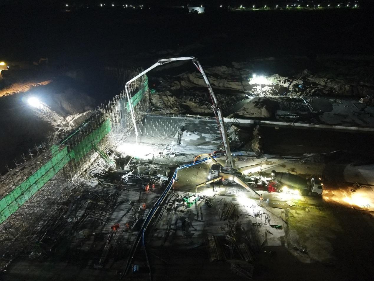 产业发展提效年活动-第三分公司沂南岸堤水源项目挑灯夜战力抢工期