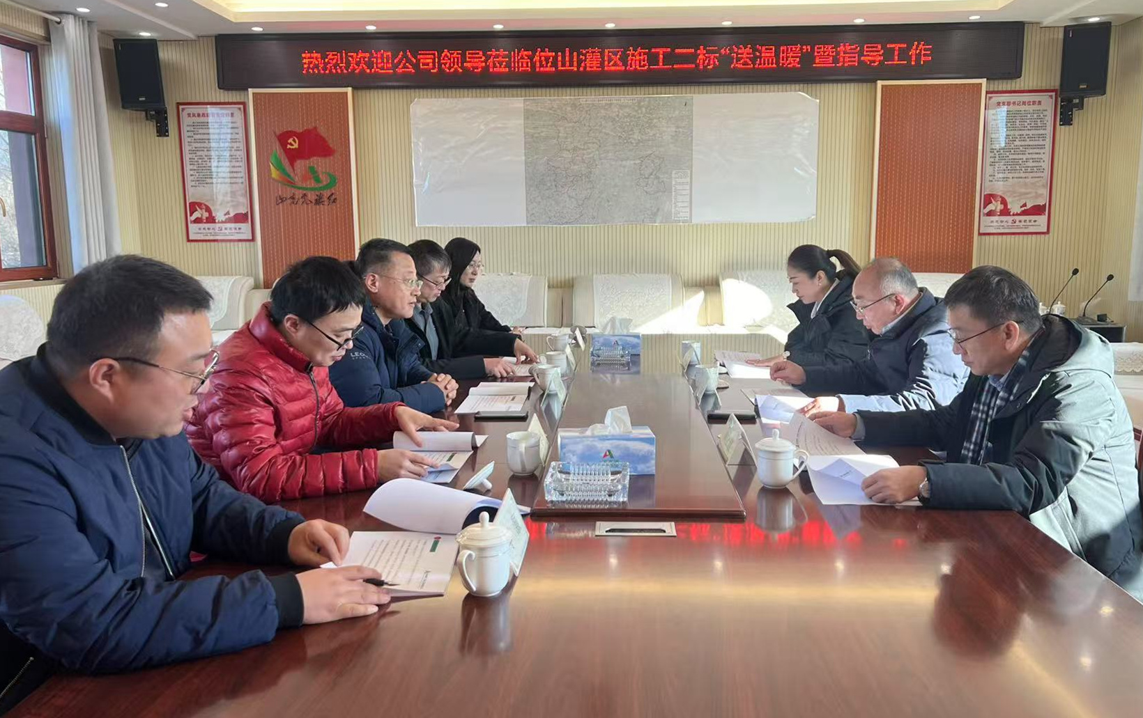 1月9日,路桥股份工会主席张子鑫等一行莅临二局有限公司位山灌区东昌府区灌域渠系配套建设工程二标,开展2025年“冬送温暖”慰问活动。公司党委副书记、工会主席王坤林、二局有限公司党委书记、董事、总经理王传波陪同。