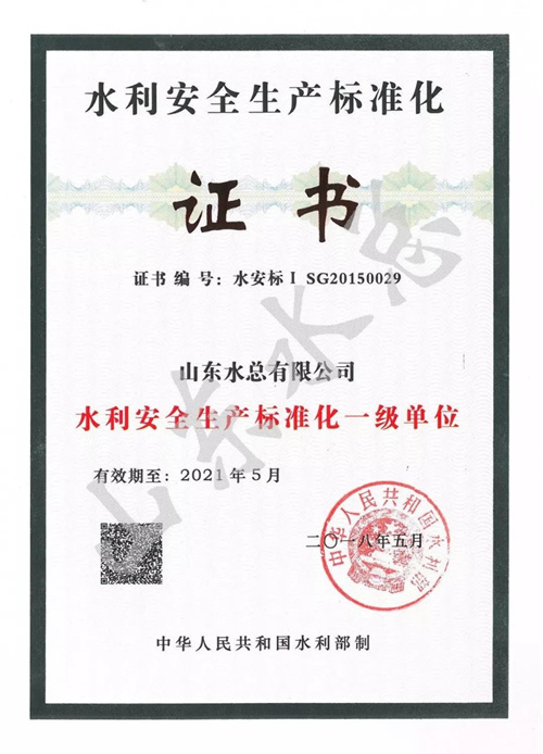 近日,公司作为首批水利安全生产标准化一级单位通过证书延期换证审核。换证审核工作的顺利完成,是对公司安全生产管理工作的充分肯定,彰显了公司注重维护从业人员合法权益,保障了广大职工群众生命财产安全,很好的履行了公司应该担当的社会责任。