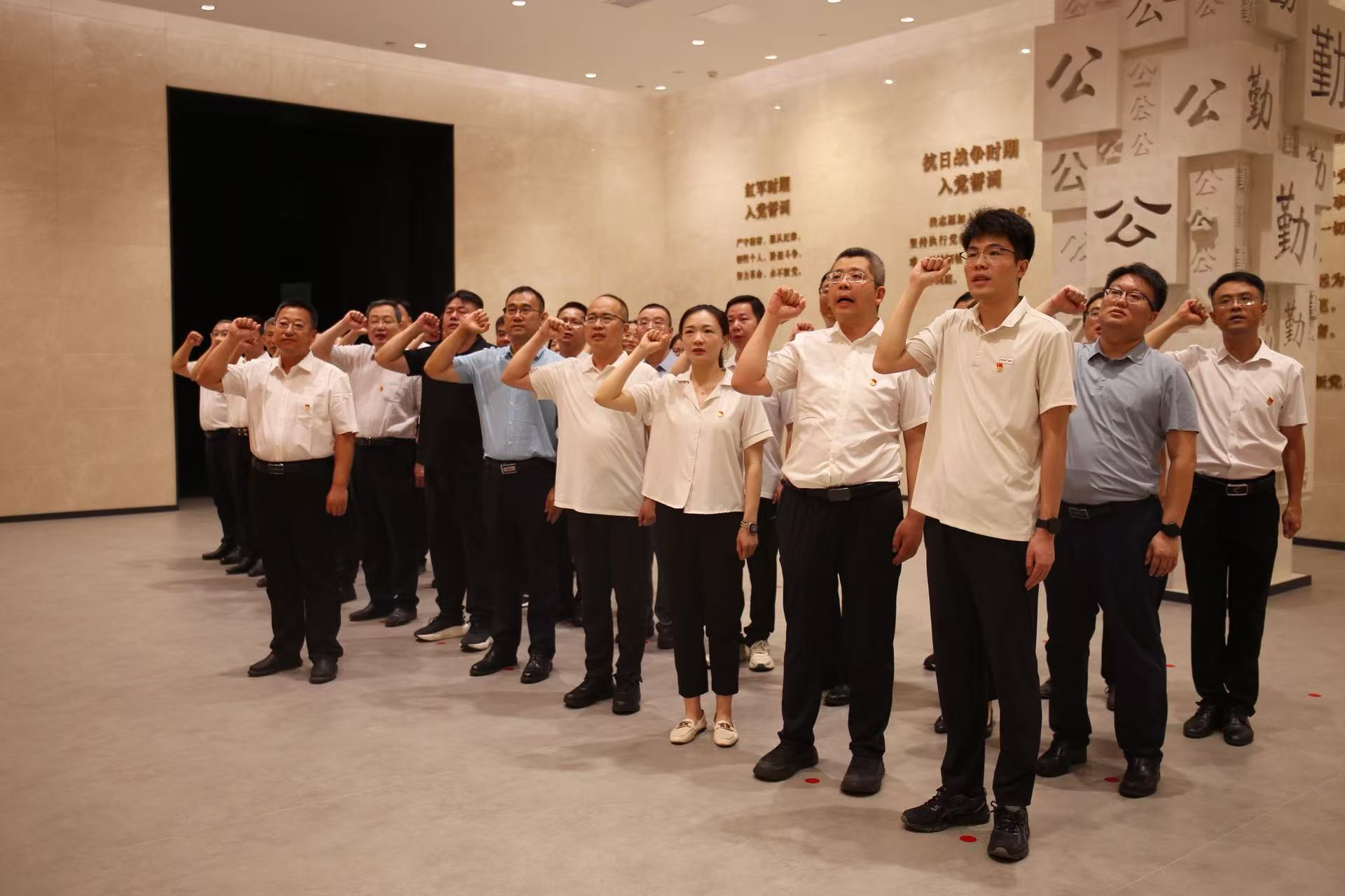 在庄严的宣誓厅内,公司党委副书记、工会主席王坤林带领全体党员干部面向党旗,重温入党誓词。全体党员干部通过正反典型案例的对比学习,深刻认识到加强纪律建设、深入贯彻中央八项规定精神学习教育、密切党群关系的重要意义。