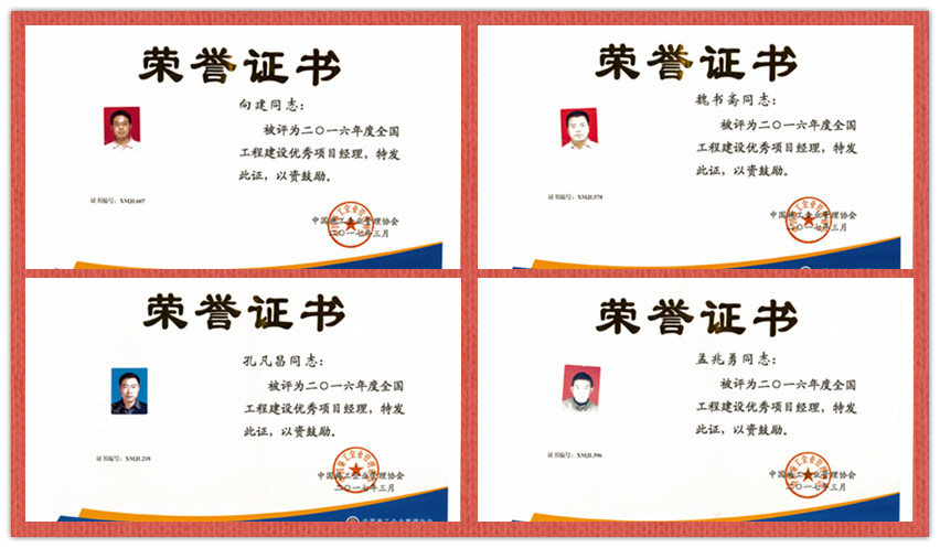 公司向建等四名同志被评为2016年度全国工程建设优秀项目经理