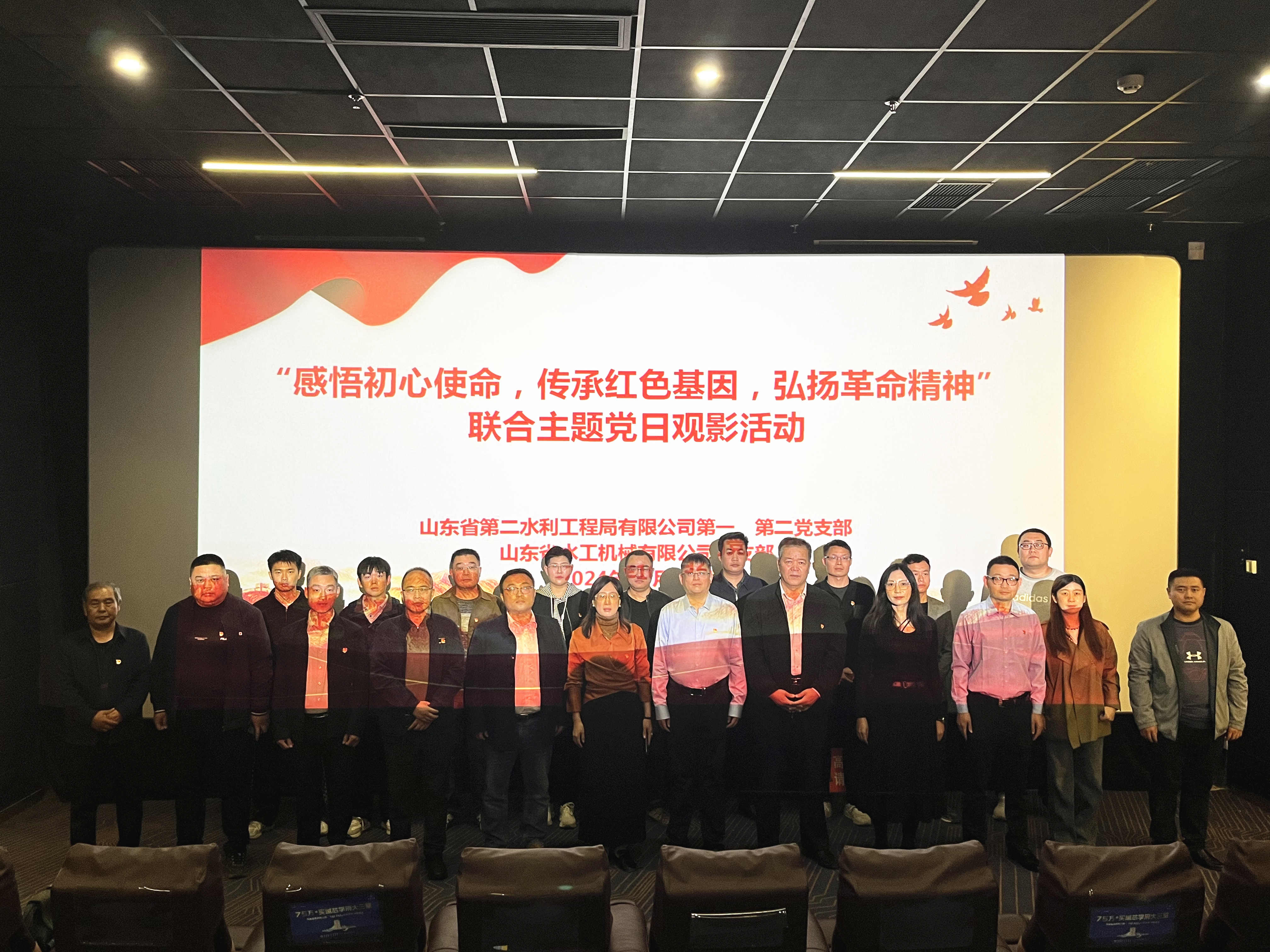 宣讲结束后,二局有限公司第一、第二党支部与水工机械公司党支部组织党员们到曲阜蓝海影城共同观看了红色电影《一生交给党》。该部影片根据中国共产党优秀党员、杰出的无产阶级革命家周逸群的故事改编而成,讲述了周逸群等革命烈士为追求真理,救民于水火而抛头颅洒热血的事迹,生动展现了共产党人为了初心使命勇往直前、百折不挠、不畏牺牲的革命精神。