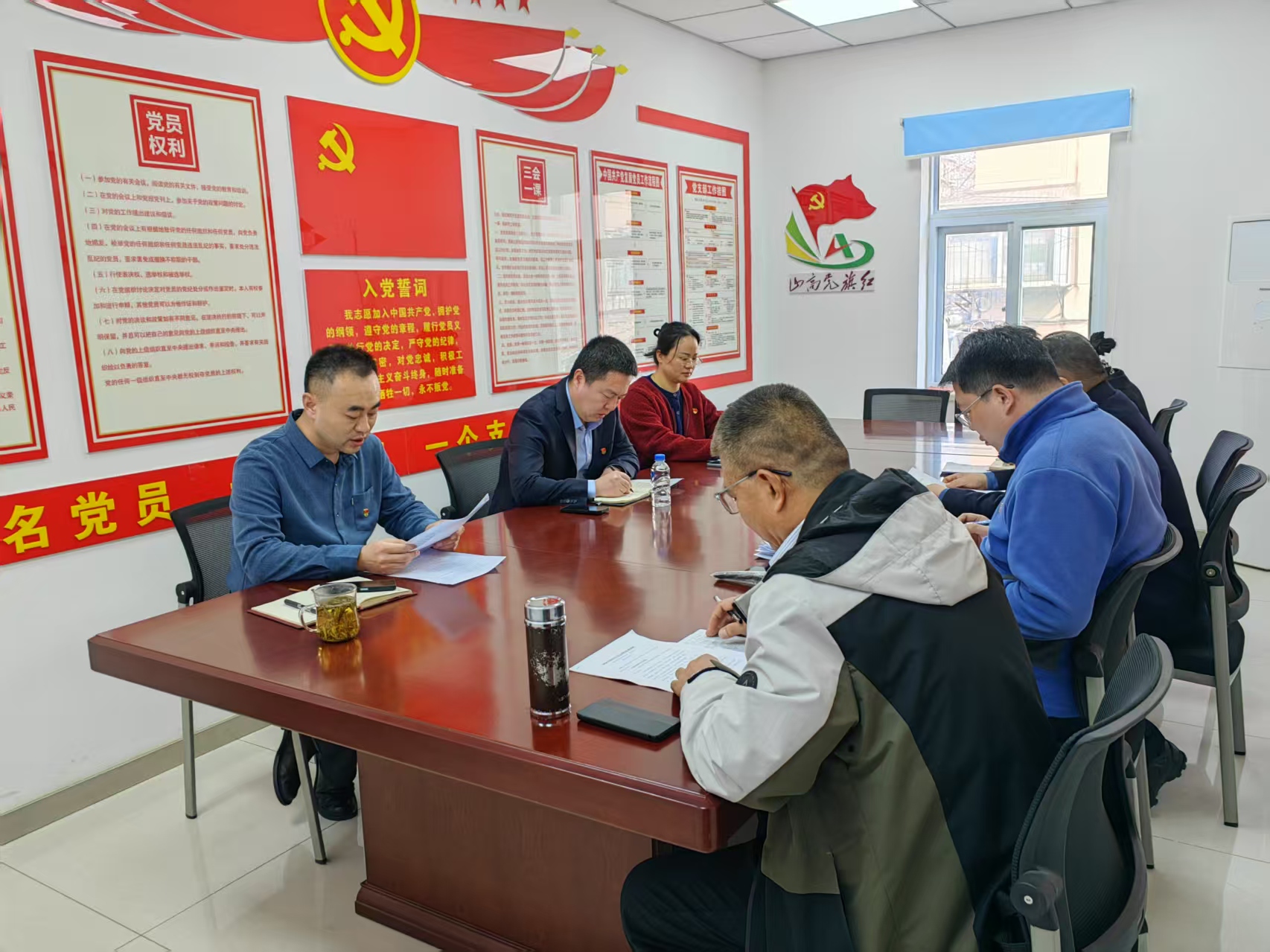 会议上,支部全体党员进行了民主评议。
